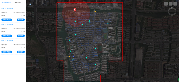 智慧水務云平臺可以通過先進的漏損定位算法和DMA的夜間最小流量,能夠及時發現漏損并精準提供漏損位置信息,自動判斷、分析各DMA是否泄漏以及當前泄漏水平,為制定檢漏方案提供依據。在出現停斷水或爆管等突發事件時,通過智慧水務云平臺的漏損定位,幫助實現排查縮小范圍,減輕一線工作人員排查難度,減少居民停斷水時間。